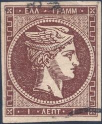 Lot0169 - ΕΛΛΑΔΑ 1871-1876 Εκδόσεις σε Δικτυωτό χαρτί 1λ Καφεκόκκινο (Red-Brown) ☉