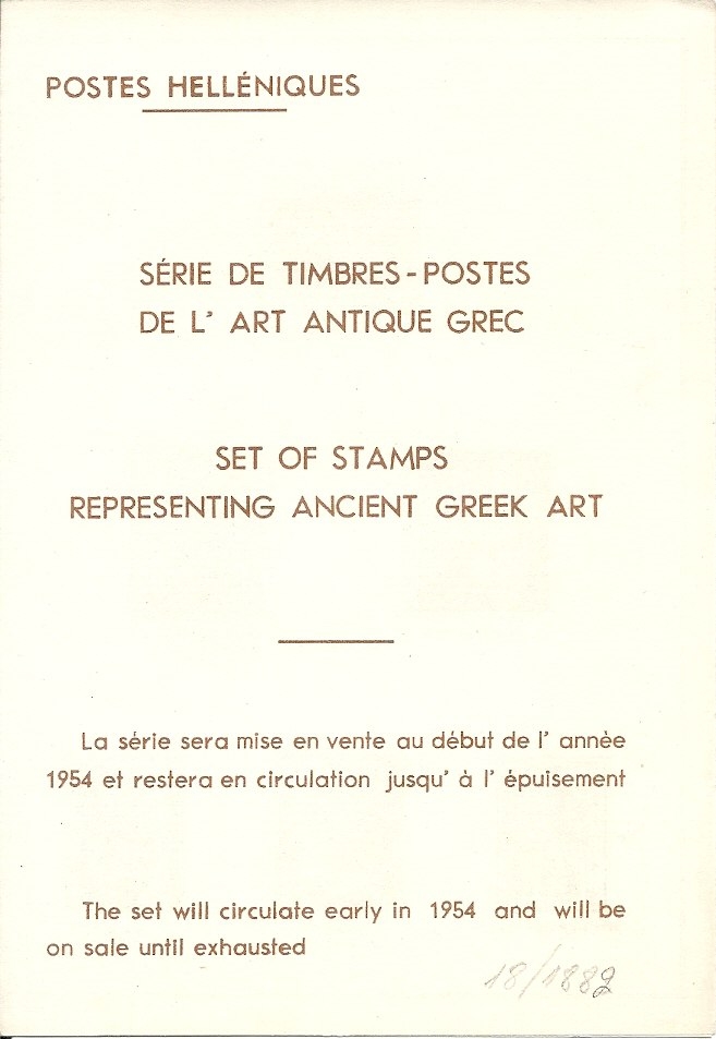 Lot1121 - ΕΛΛΑΔΑ 1954 σπάνιο prospectus για την Αρχαία Τέχνη Α, δίγλωσσο, στην γαλλική και αγγλική γλώσσα