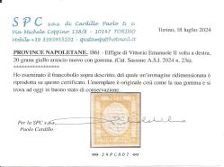 Lot1826 - Italian States Province Napolitana 1861 20gr Giallo Arancio MH CERTIFICATE PAOLO CARDILLO SPC, κατάλογος Sassone No 23a *