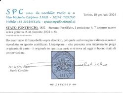 Lot1830 - Italian States Papal States 1852 7BAJ MNG Σπάνιο είδος χαρτιού RRR CERTIFICATE PAOLO CARDILLO , κατάλογος Sassone No 8 *
