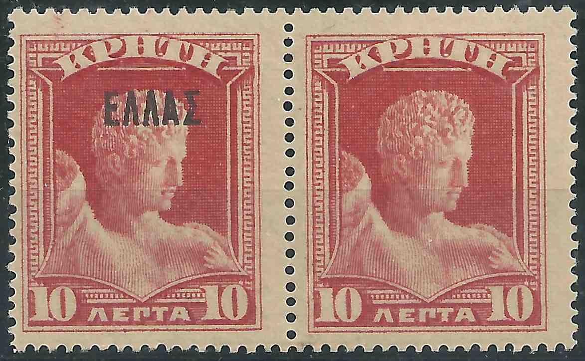 Lot0946 - ΕΛΛΑΔΑ 1908, Νέες Χώρες, Κρήτη, επισήμανση μικρό ΕΛΛΑΣ σε ζεύγος χωρίς επισήμανση **/*/bl2