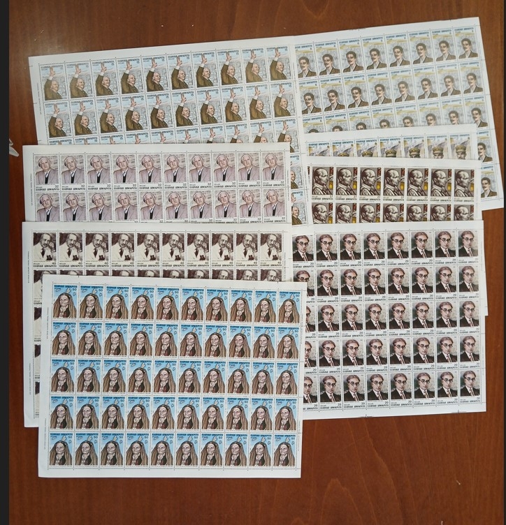 Lot1014 - ΕΛΛΑΔΑ 1983, πλήρης σειρά σε 8 φύλλα των 50 γραμματοσήμων για τις προσωπικότητες **