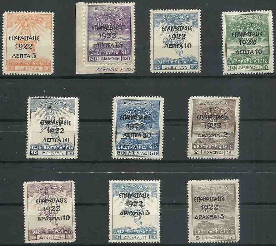 Lot0577 - ΕΛΛΑΔΑ 1923 Έκδοση για την επανάσταση του 1922 επί γραμματοσήμων Εκστρατείας 1912 **