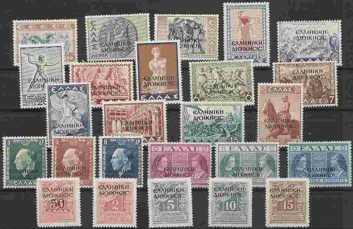 Lot0642 - ΕΛΛΑΔΑ 1940 Κορυτσάς 25 διάφορα γραμματόσημα 1930-1939 με επισήμανση 'ΕΛΛΗΝΙΚΗ ΔΙΟΙΚΗΣΙΣ' **