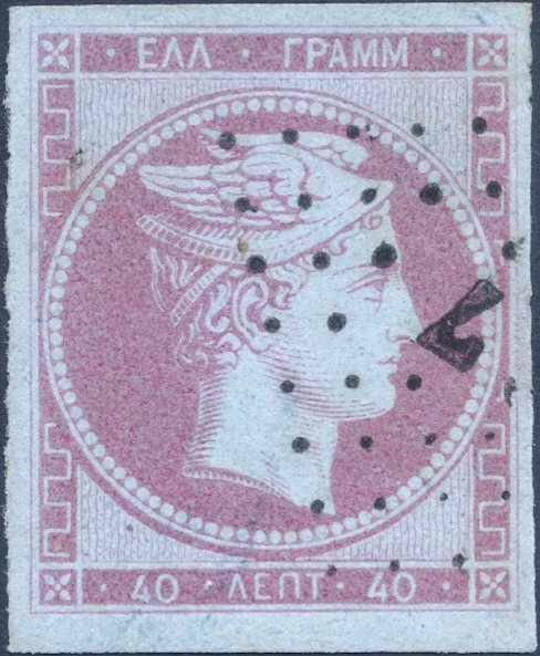 Lot0015 - ΕΛΛΑΔΑ 1861 40λ σε πράσινο χαρτί (On green paper) ☉