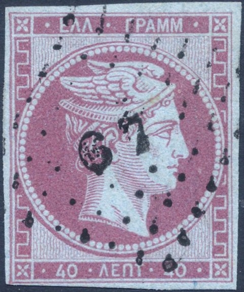 Lot0058 - ΕΛΛΑΔΑ 1861-1862 40λ μωβ σε μπλε (Mauve on Blue) ☉