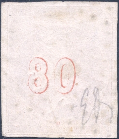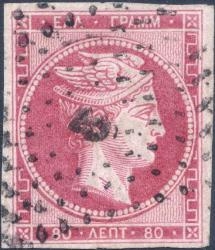 Lot0120 - ΕΛΛΑΔΑ 1862 80λ Ροδοκαρμινόχρωμο (Rose-Carmine) με Πορτοκαλί ΑΕ και Ραβδωτό κάθετο μετάλλιο με ελαφρά τσάκιση ☉
