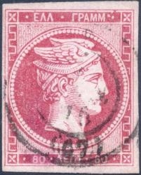 Lot0153 - ΕΛΛΑΔΑ 1868-1869 80λ Καρμινόχρωμο (Carmine) ☉