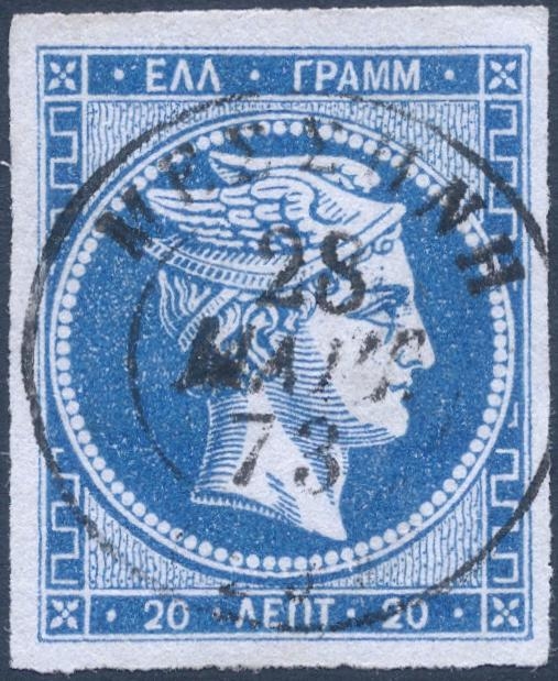Lot0186 - ΕΛΛΑΔΑ 1871-1876 20λ Μπλε Βαθύ (Deep Blue) ☉