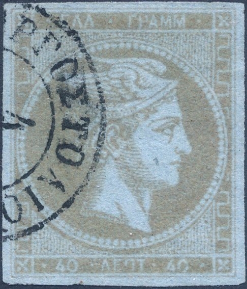 Lot0201 - ΕΛΛΑΔΑ 1871-1876 40λ Σιτόχρωμο σε Μπλε (Bistre on Blue) ☉