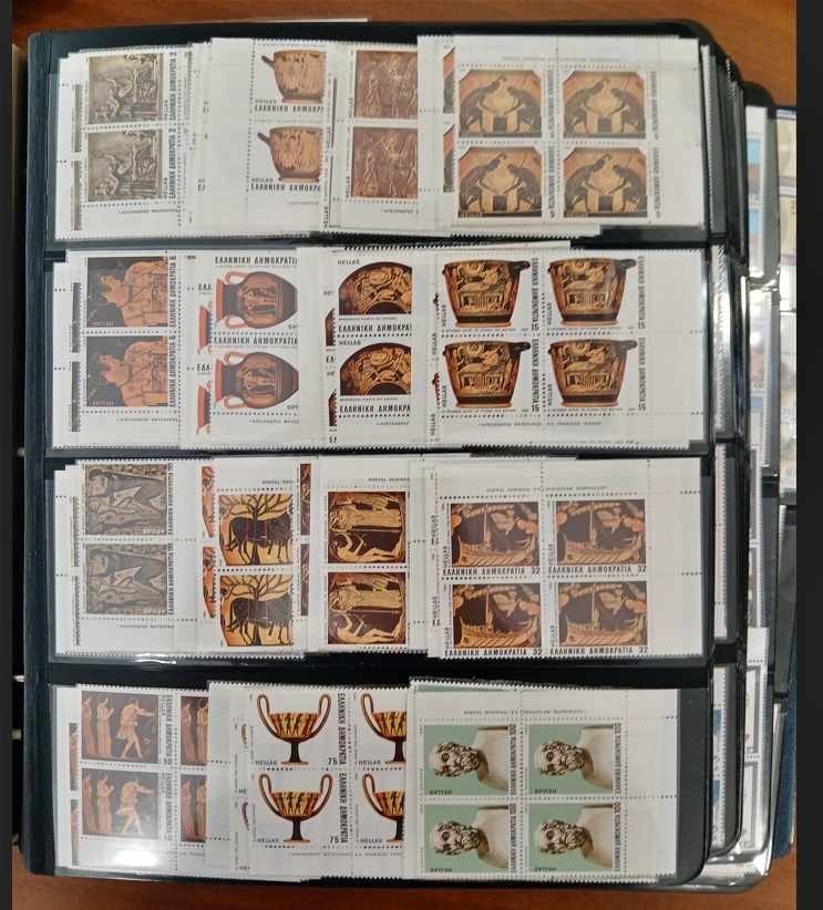 Lot2624 - Συλλογή Ελλάδας 1983-2004 σε τετράδες, 1 άλμπουμ με σφραγισμένα και 1 με Ολυμπιονίκες **/☉