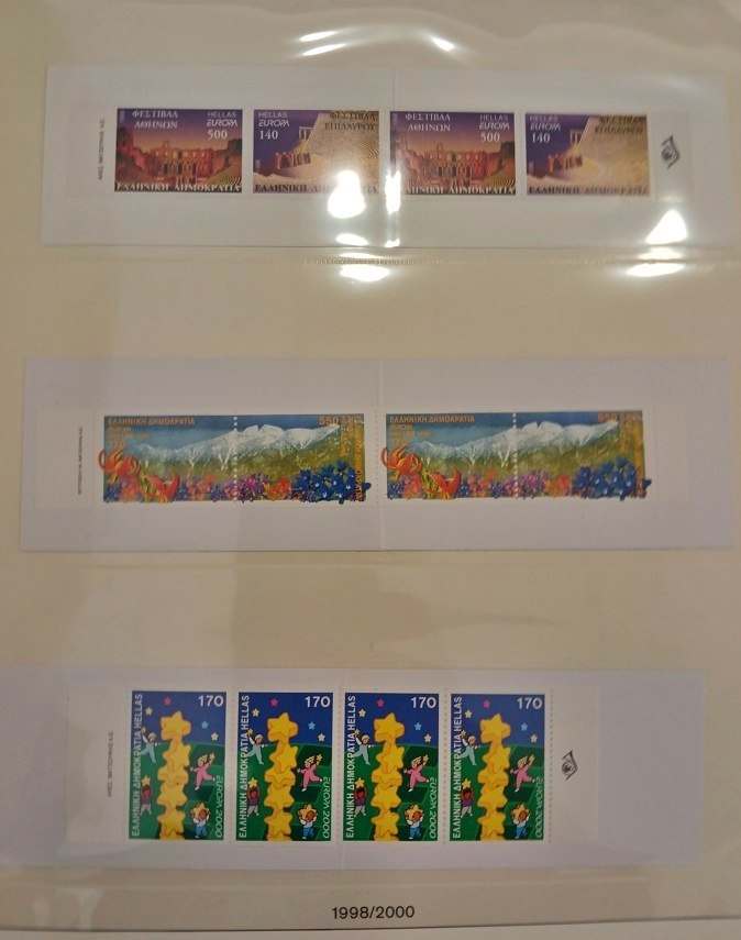 Lot2625 - Συλλογή Ελλάδας σε 5 άλμπουμ, 1 άλμπουμ περιέχει τετράδες σφραγισμένες 1999-2008, 1 άλμπουμ με προσωπικά γραμματόσημα και 3 άλμπουμ που περιέχουν τευχίδια, πεντάδες λωρίδες, φράμα, κάρτες μά