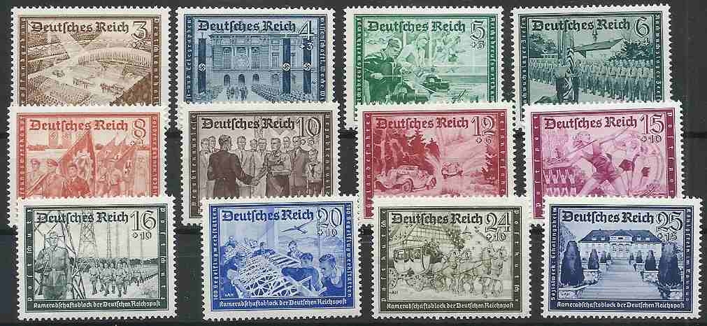 Lot1733 - ΓΕΡΜΑΝΙΚΟ ΡΑΪΧ 1939, κατάλογος Michel No 702-711 **