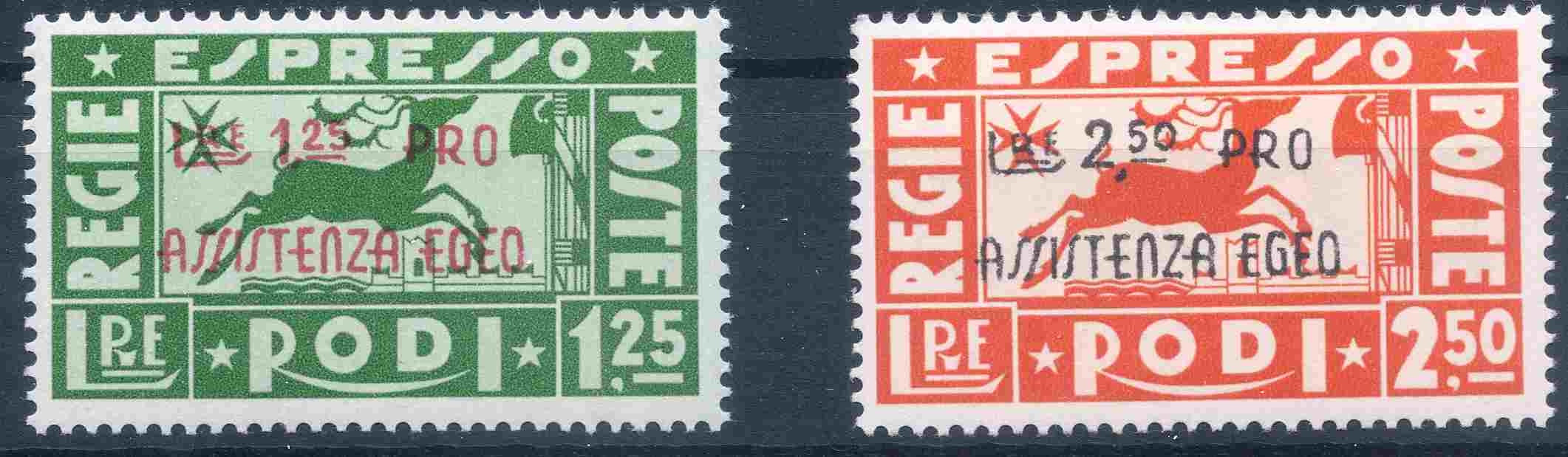 Lot0879 - ΕΛΛΑΔΑ1936, 'Νέες Χώρες' 'Έκδοση Εξπρές'- 'PRO ASSISTENSA EGEO' κόκκινη-μαύρη επισήμανση 1,25L+1,25L-2,50L+2,50L **/*