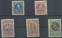 Lot0935 - ΕΛΛΑΔΑ 1900, Νέες Χώρες Κρητική Πολιτεία 25λ-5δρχ επισήμανση κόκκινη 'ΠΡΟΣΩΡΙΝΟΝ' με μικρά κεφαλαία γράμματα, οι 5δρχ με υπογραφή Emilio Diena *