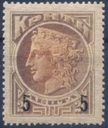 Lot0938 - ΕΛΛΑΔΑ 1904, Νέες Χώρες Κρητική Πολιτεία 5/20λ με επισήμανση μαύρη '5' **