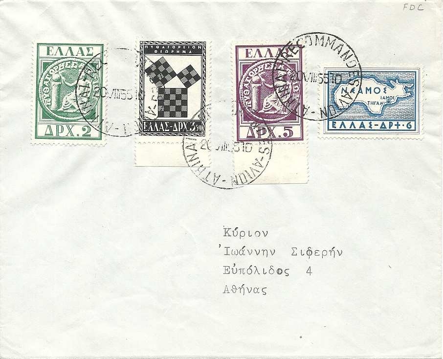 Lot1026 - ΕΛΛΑΔΑ 1955 ΦΠΗΚ (Α) της αναμνηστικής έκδοσης ΠΥΘΑΓΟΡΑ ✉
