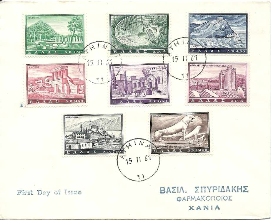 Lot1038 - ΕΛΛΑΔΑ 1961 ΦΠΗΚ (Α) κοινή Τουριστική έκδοση σε 2 φακέλους ✉