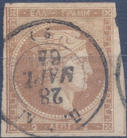 Lot0049 - ΕΛΛΑΔΑ 1861-1862 2 λεπτά σιτόχρωμο (bistre) ☉