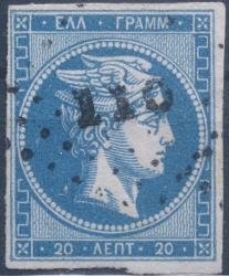 Lot0111 - ΕΛΛΑΔΑ 1862-1867 20 λεπτά μπλε ουρανί (sky blue) με λέπτυνση ☉