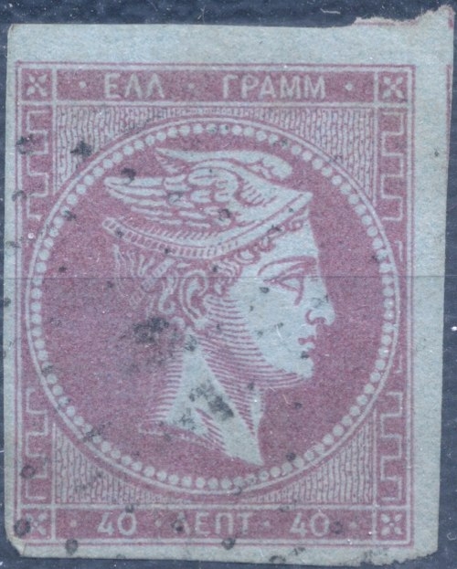 Lot0139 - ΕΛΛΑΔΑ 1862-1867 40 λεπτά μώβ σε πρασινοκυανό (mauve on greenish blue) ☉