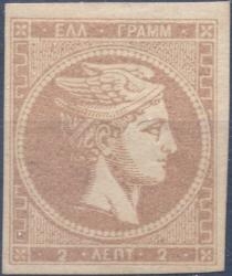 Lot0075 - ΕΛΛΑΔΑ 1862-1867 2 λεπτά κιτρινοσιτόχρωμο (yellow bistre) *