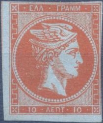 Lot0103 - ΕΛΛΑΔΑ 1862-1867 10 λεπτά κίτρινο πορτοκαλί σε μπλέ (yellow orange on blue), με μετατοπισμένο αrιθμό *