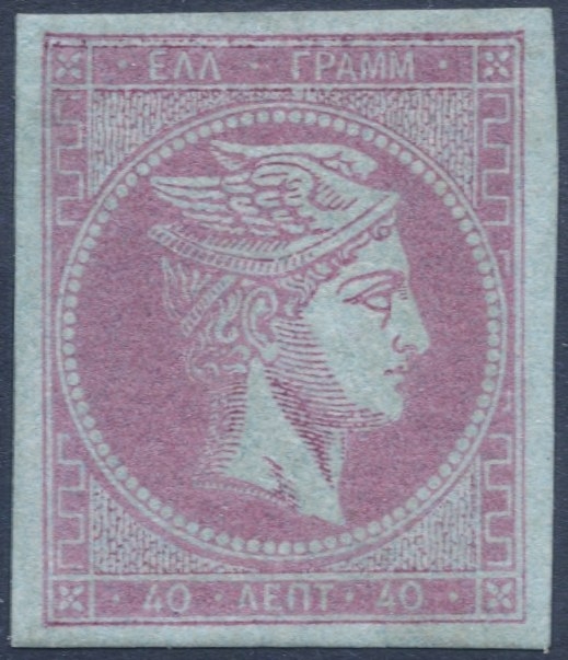 Lot0131 - ΕΛΛΑΔΑ 1862-1867 40 λεπτά μωβ ανοιχτό σε μπλε (mauve light on blue) *