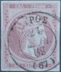 Lot0186 - ΕΛΛΑΔΑ 1868-1869 40 λεπτά γκρι μωβ σε μπλε (grey mauve on blue) ☉