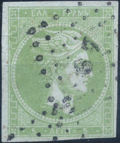 Lot0171 - ΕΛΛΑΔΑ 1868-1869 Εκδόσεις Καθαρισμένων Πλακών 5λ πράσινο σε πρασινοκίτρινο (green to yellow-green) ☉