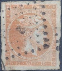 Lot0177 - ΕΛΛΑΔΑ 1868-1869 10 λεπτά πορτοκαλί σε πρασινοκίτρινο (orange on greenish yellow) με ανεστραμμένο 1 & 3γενές σφάλμα ☉