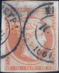 Lot0178 - ΕΛΛΑΔΑ 1868-1869 10 λεπτά πορτοκαλί σε πρασινοκίτρινο (orange on greenish) με ανεστραμμένο 0 ☉