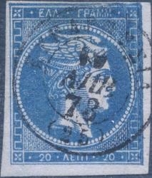 Lot0204 - ΕΛΛΑΔΑ 1871-1872 20 λεπτά μπλε (blue), θέση πλάκας 18, συνοδεύεται με πιστοποιητικό Παπαθανασίου ☉