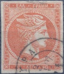 Lot0224 - ΕΛΛΑΔΑ 1871-1876 10 λεπτά πορτοκαλοκόκκινο (red-orange) με ΑΕ 01 αντί για 10 ΣΠΑΝΙΟ ☉