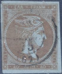 Lot0247 - ΕΛΛΑΔΑ 1871-1876 40 λεπτά χαλκόχρωμο σε μπλε (bronze on blue) ☉