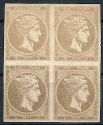 Lot0341 - ΕΛΛΑΔΑ 1880-1886 2 λεπτά σιτόχρωμο-γκρι (grey bistre), τετράδα σε λευκό χαρτί με σφάλμα πλάκας */bl4
