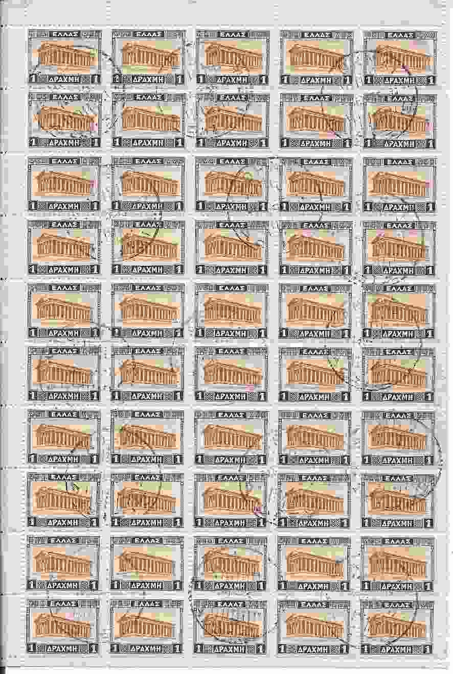 Lot0587 - ΕΛΛΑΔΑ 1931-1935, 1δρχ, φύλλο 50τεμαχίων από τα ΤΟΠΙΑ Β ☉