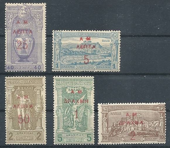 Lot0511 - ΕΛΛΑΔΑ 1900, επισήμανση ΑΜ και νέα αξία σε γραμματόσημα Α' Ολυμπιακών Αγώνων 1896 **