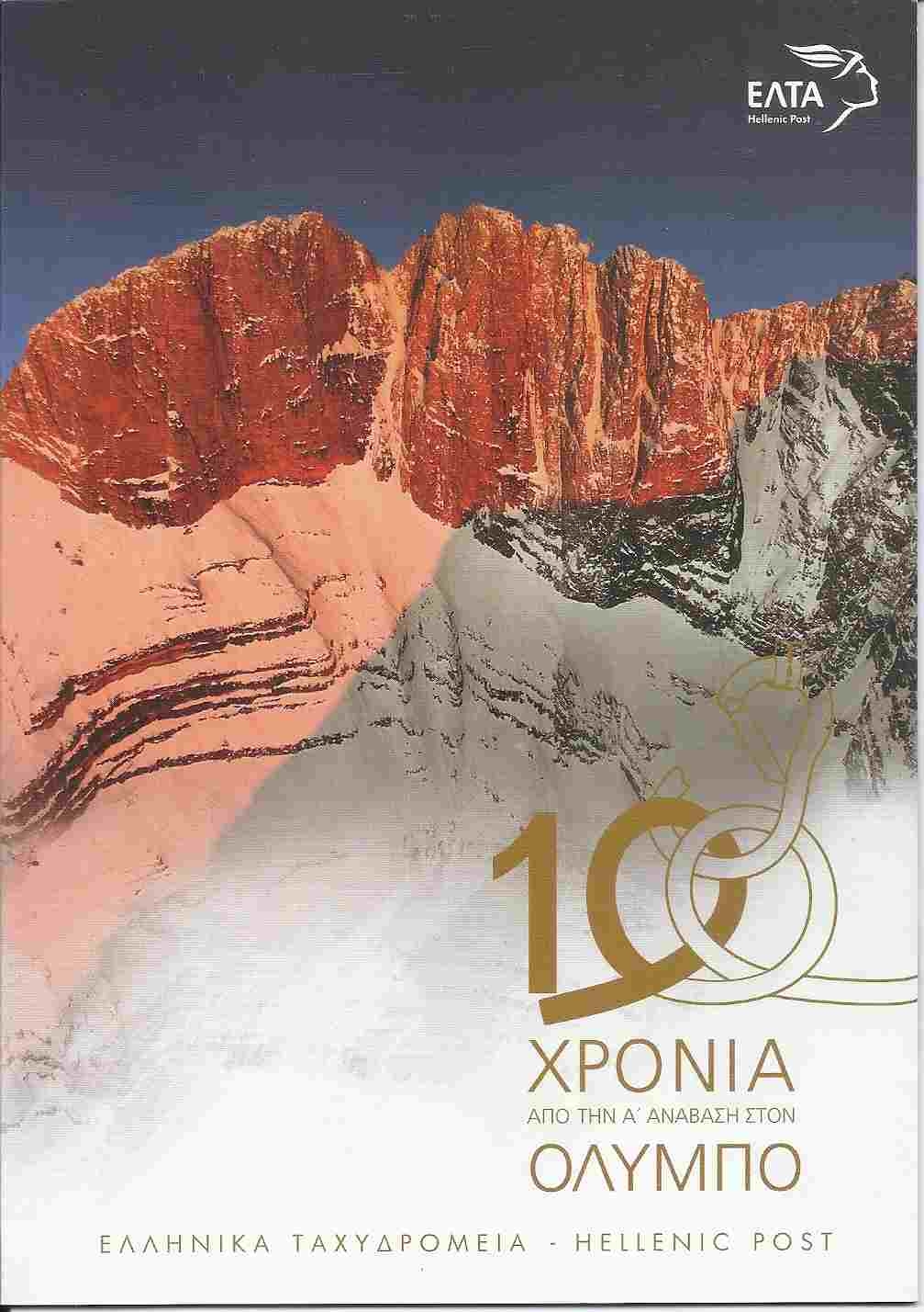 Lot0762 - ΕΛΛΑΔΑ 2013, αναμνηστική σειρά 100 χρόνια από την πρώτη ανάβαση στον Όλυμπο, σετ 4 φεγιέ στην επίσημη συσκευασία με ΠΗΚ ☉