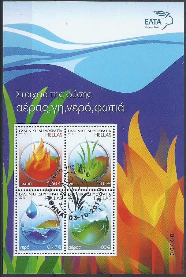 Lot0763 - ΕΛΛΑΔΑ 2013, αναμνηστική σειρά ΣΤΟΙΧΕΙΑ ΤΗΣ ΦΥΣΗΣ, φυλλαράκι 1ης σειράς με ΠΗΚ 03-10-2013 ☉