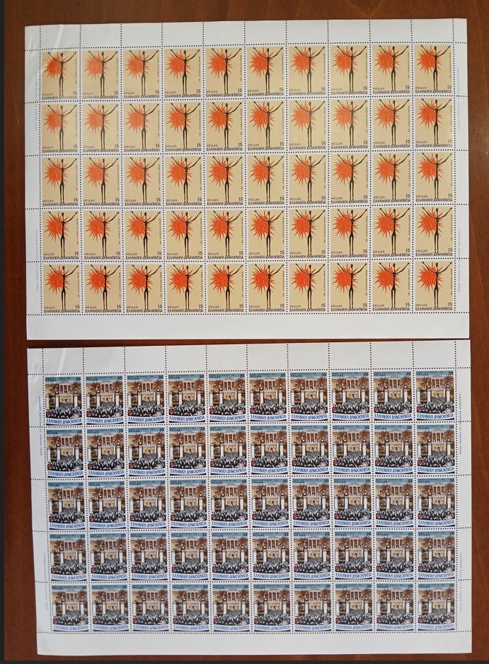 Lot1017 - ΕΛΛΑΔΑ 1983, πλήρης σειρά σε 2 φύλλα των 50 γραμματοσήμων για τα 10 ΧΡΟΝΙΑ ΑΠΟ ΤΗΝ ΕΞΕΡΓΕΣΗ ΤΟΥ ΠΟΛΥΤΕΧΝΕΙΟΥ **