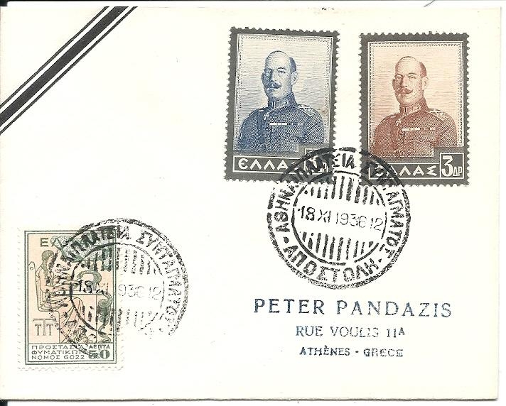 Lot1032 - ΕΛΛΑΔΑ 1936 ΦΠΗΚ (Α) σειρά Βασιλέως Κωνσταντίνου, πένθιμη ✉