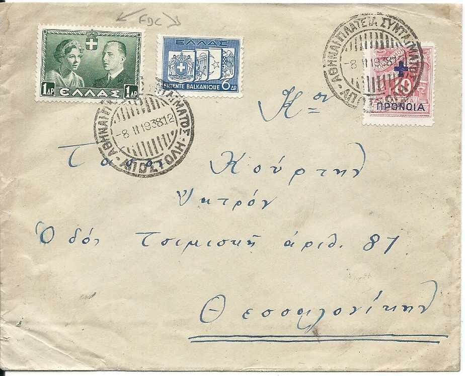 Lot1034 - ΕΛΛΑΔΑ 1938 ΦΠΗΚ (Α) με τους Γάμους Παύλου (1δρχ) και της Διαβαλκανικής ✉