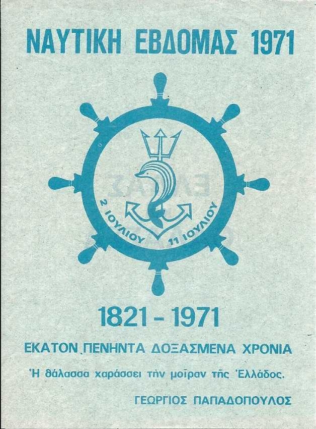 Lot2001 - ΕΛΛΑΔΑ 1971, διαφημιστικό φυλλαράκι της ΝΑΥΤΙΚΗΣ ΕΒΔΟΜΑΣ 1971, για τα 150 χρόνια από την Ελληνική Επανάσταση, 2-11.7.1971