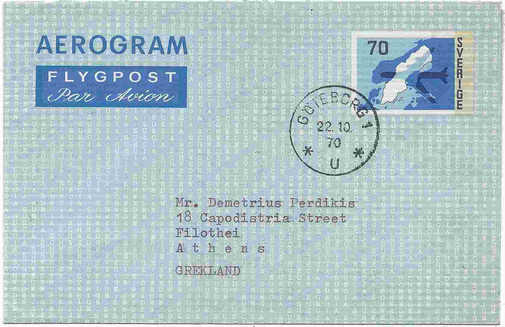 Lot1314 - ΣΟΥΗΔΙΑ 1970, ταχυδρομημένο αερόγραμμα.