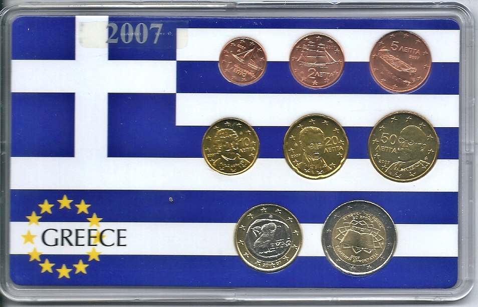 Lot2505 - ΕΛΛΑΔΑ 2007, πλήρης σειρά νομισμάτων ακυκλοφόρητη, σε κασετίνα
