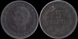 Lot2415 - ΕΛΛΑΔΑ 1869 Βασιλεύς Γεώργιος Α' 5 λεπτά, αριθμός καταλόγου Hellas : 124