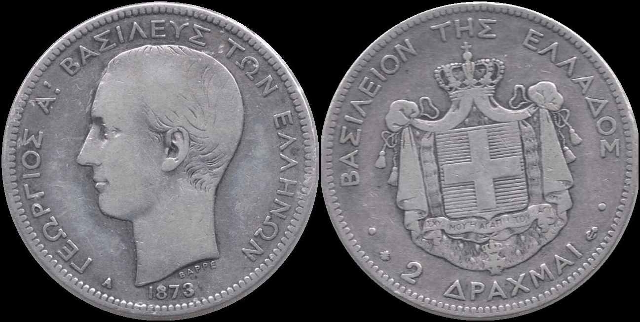 Lot2418 - ΕΛΛΑΔΑ 1873, 2 δραχμές Βασιλεύς Γεώργιος Α, αριθμός καταλόγου Hellas : 156