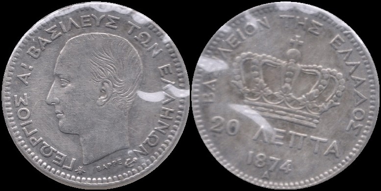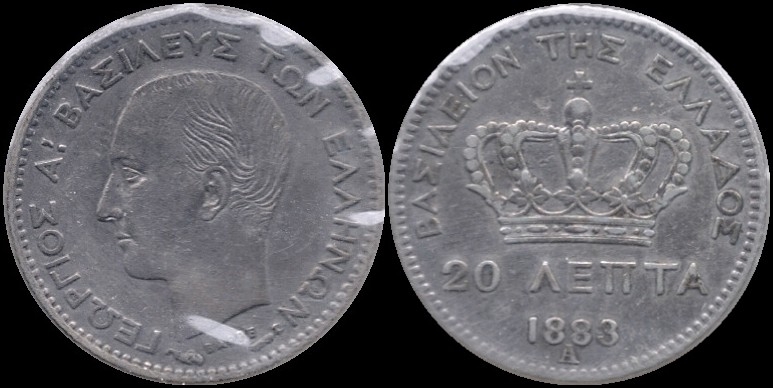 Lot2428 - ΕΛΛΑΔΑ 1883, 20 λεπτά Βασιλεύς Γεώργιος Α , αριθμός καταλόγου Hellas : 141, 20 λεπτά Βασιλεύς Γεώργιος Α 1874, αριθμός καταλόγου Hellas : 140