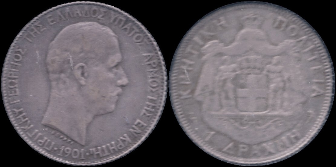 Lot2433 - ΕΛΛΑΔΑ Κρητική Πολιτεία, λαχνός, 1 δραχμή, αριθμός καταλόγου Hellas : C9